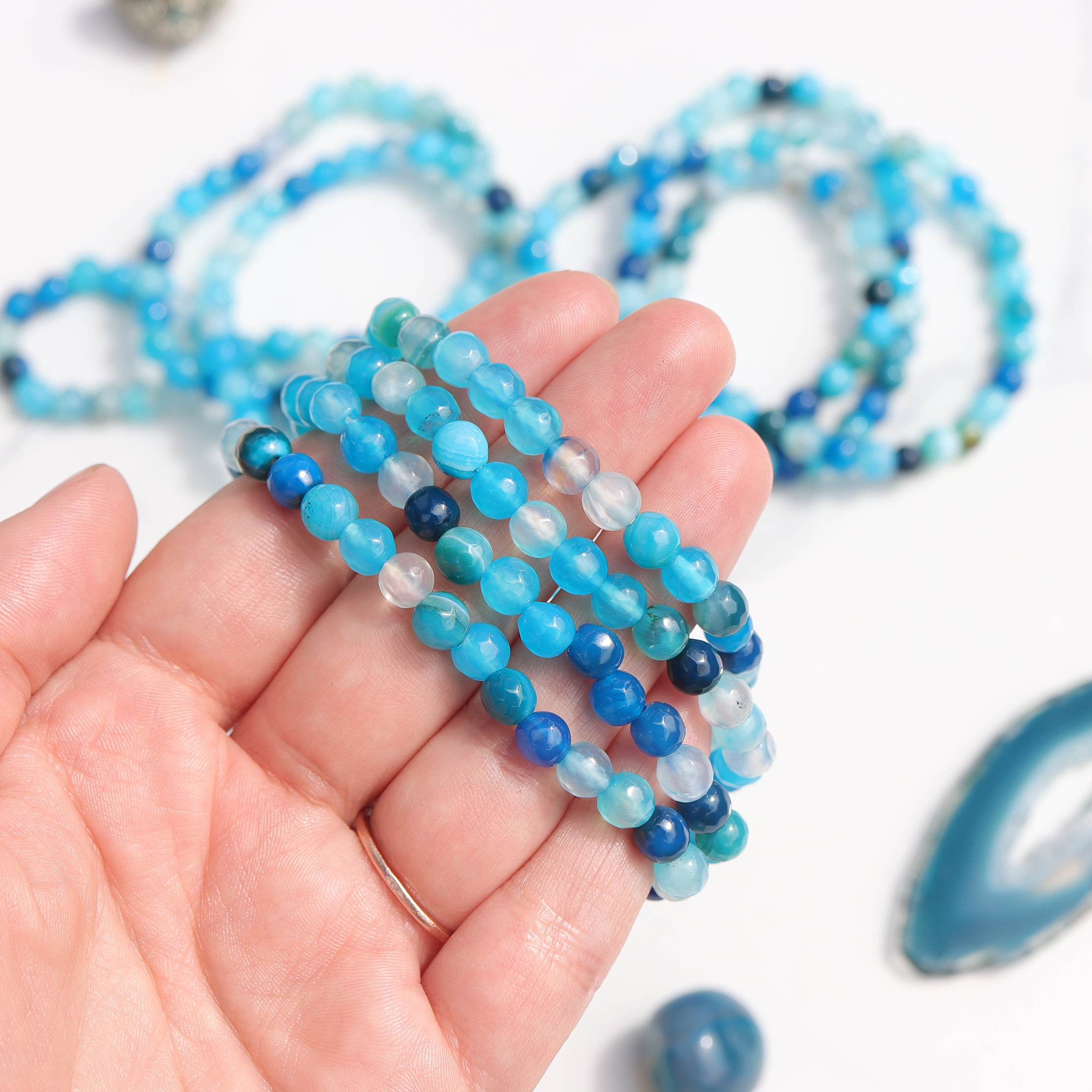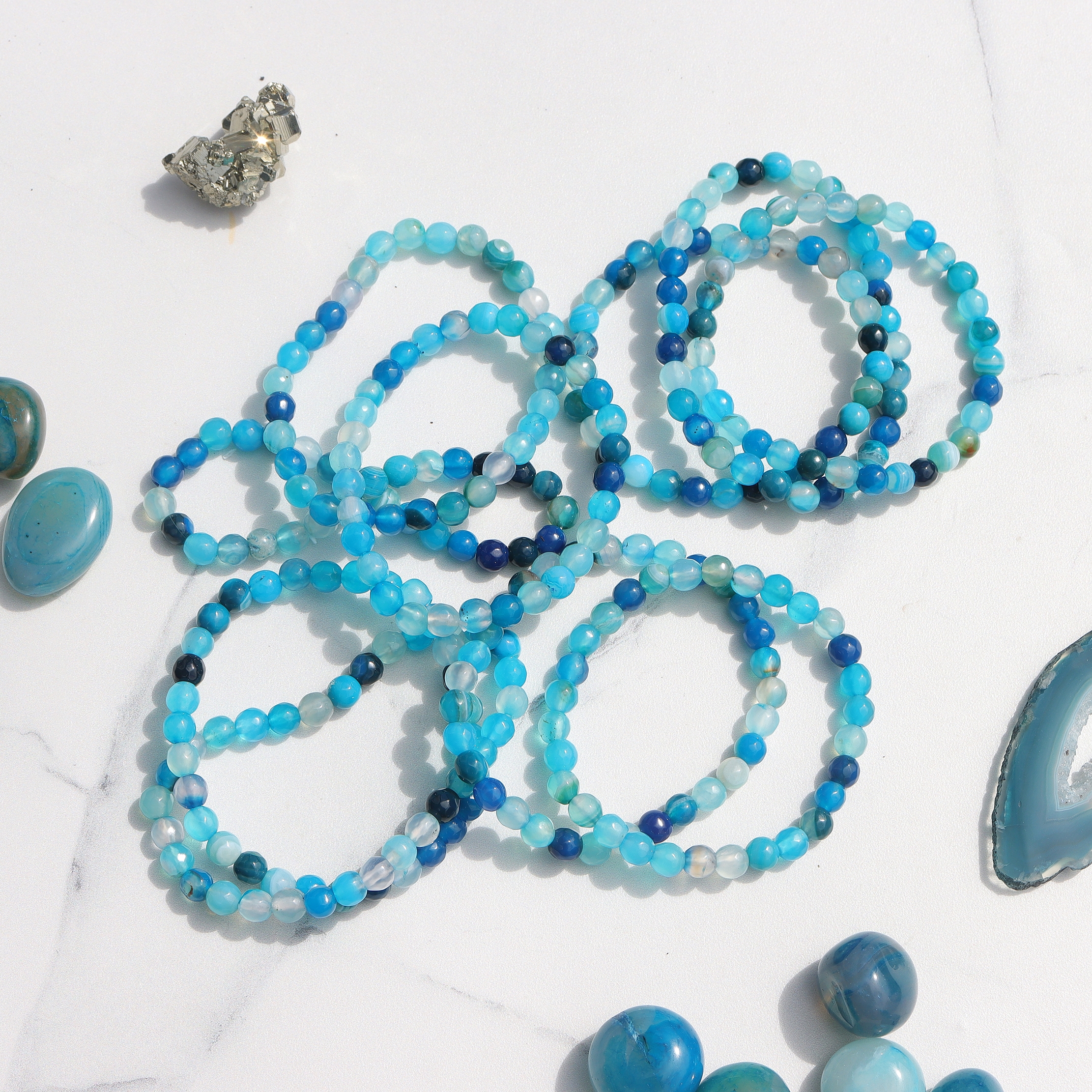 Od zawsze agat był używany do ochrony przed złą energią i klęskami żywiołowymi. W tradycyjnej medycynie chińskiej używano go do usuwania negatywnych myśli; Obecnie nadal uważa się, że ma on moc ochronną, a także zdolność odblokowywania ośrodków emocjonalnych, aby pomóc uwolnić napięcie w sercu i gardle, poprawiając w ten sposób więź emocjonalną i znaleźć swój głos – zarówno dosłownie, jak i w przenośni.
