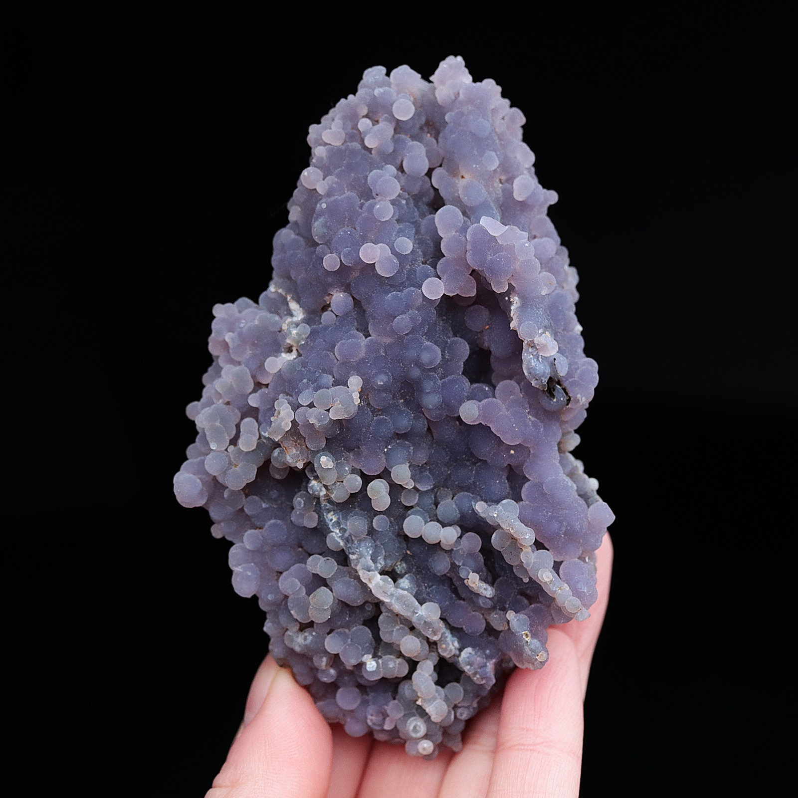 Agat winogronowy to maleńkie fioletowe kryształy kwarcu o kulistym kształcie. Przybierają kształt kiści winogron, stąd nazwa agat winogronowy. Został odkryty w 2016 roku w Indonezji.