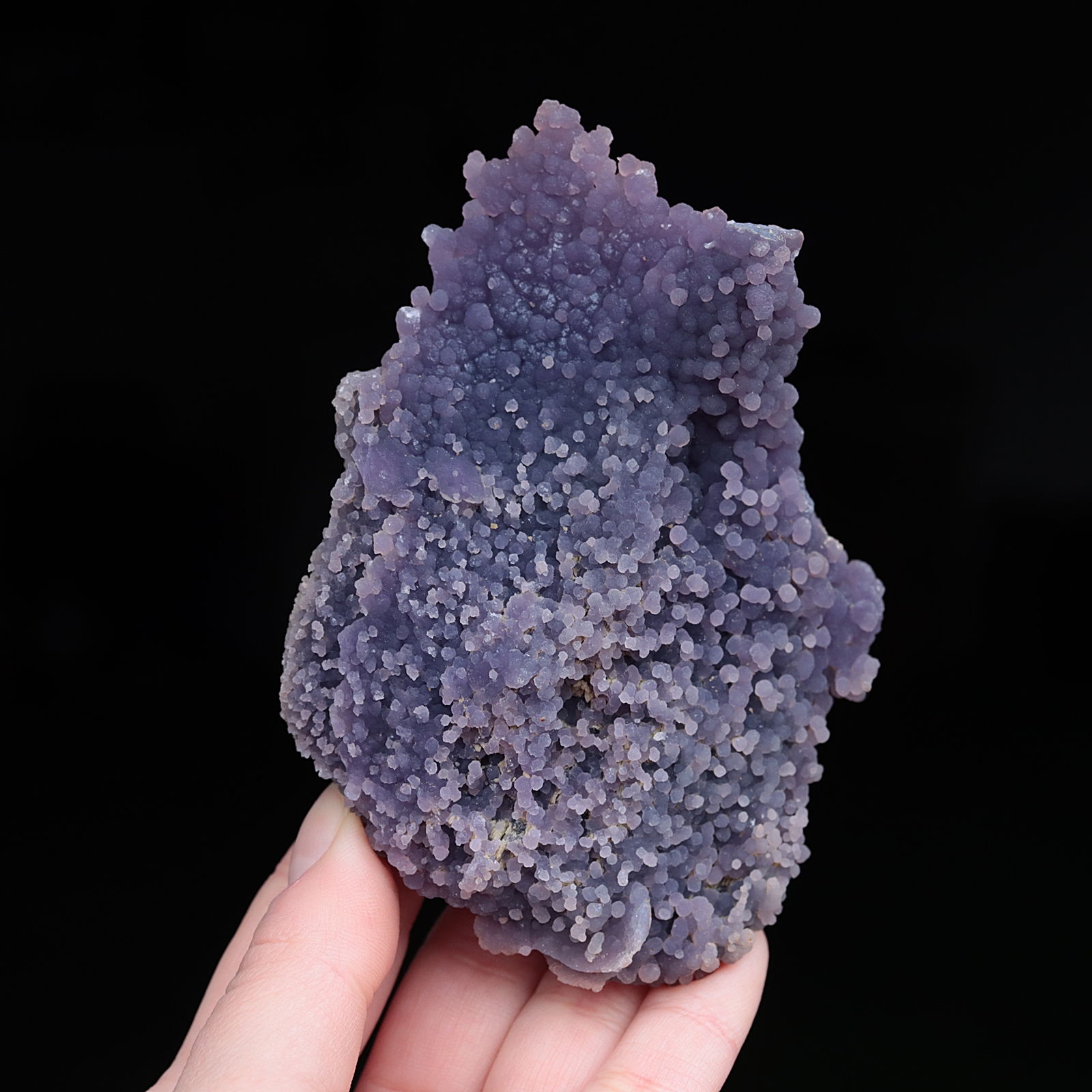 Agat winogronowy to maleńkie fioletowe kryształy kwarcu o kulistym kształcie. Przybierają kształt kiści winogron, stąd nazwa agat winogronowy. Został odkryty w 2016 roku w Indonezji.