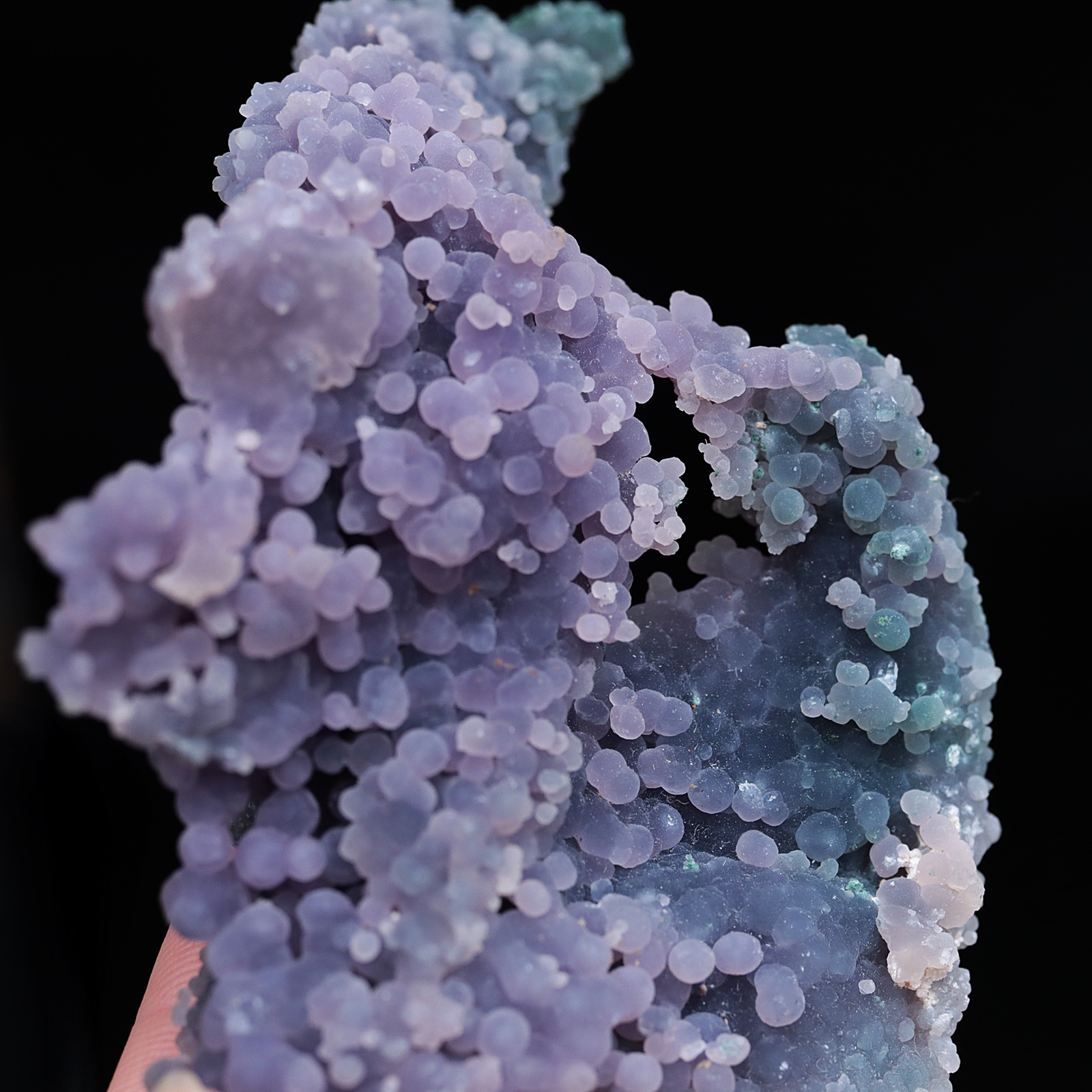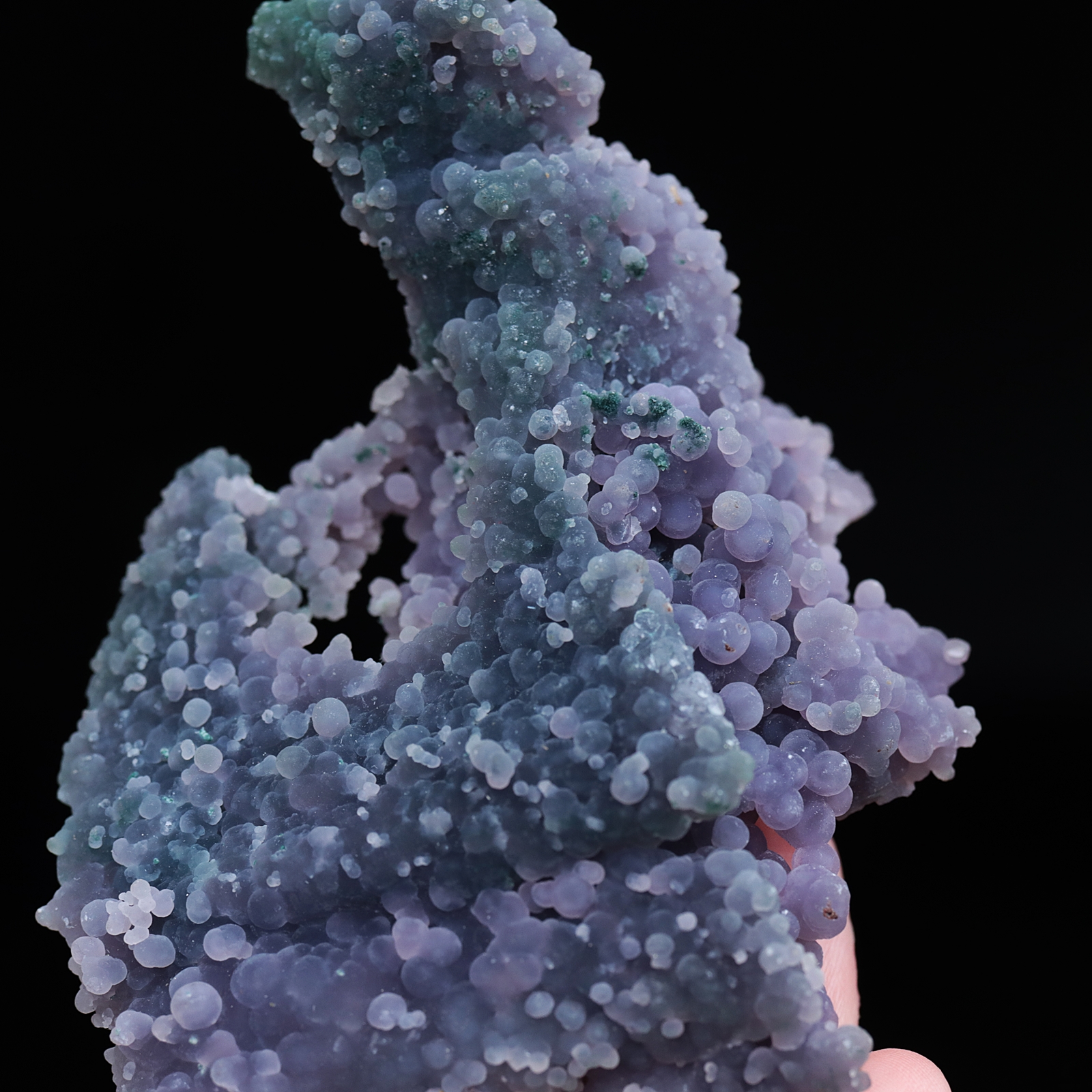 Agat winogronowy to maleńkie fioletowe kryształy kwarcu o kulistym kształcie. Przybierają kształt kiści winogron, stąd nazwa agat winogronowy. Został odkryty w 2016 roku w Indonezji.