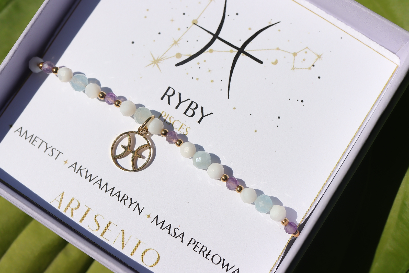Odkryj wyjątkową bransoletkę zodiakalną dla Ryb, która łączy astrologiczny symbol tego znaku z mocą starannie dobranych kamieni. Każdy element tej bransoletki został stworzony przez nas z myślą o wyjątkowych cechach zodiakalnej Ryby. Ta kryształowa biżuteria wspiera intuicję i przynosi wewnętrzny spokój oraz pomaga osiągnąć harmonię i równowagę w codziennym życiu. Nosząc bransoletkę zodiakalną nie tylko podkreślasz swoją astrologiczną tożsamość, ale także czerpiesz korzyści z magicznych właściwości kamieni, które dodają pozytywnej energii Twojemu życiu. ✨