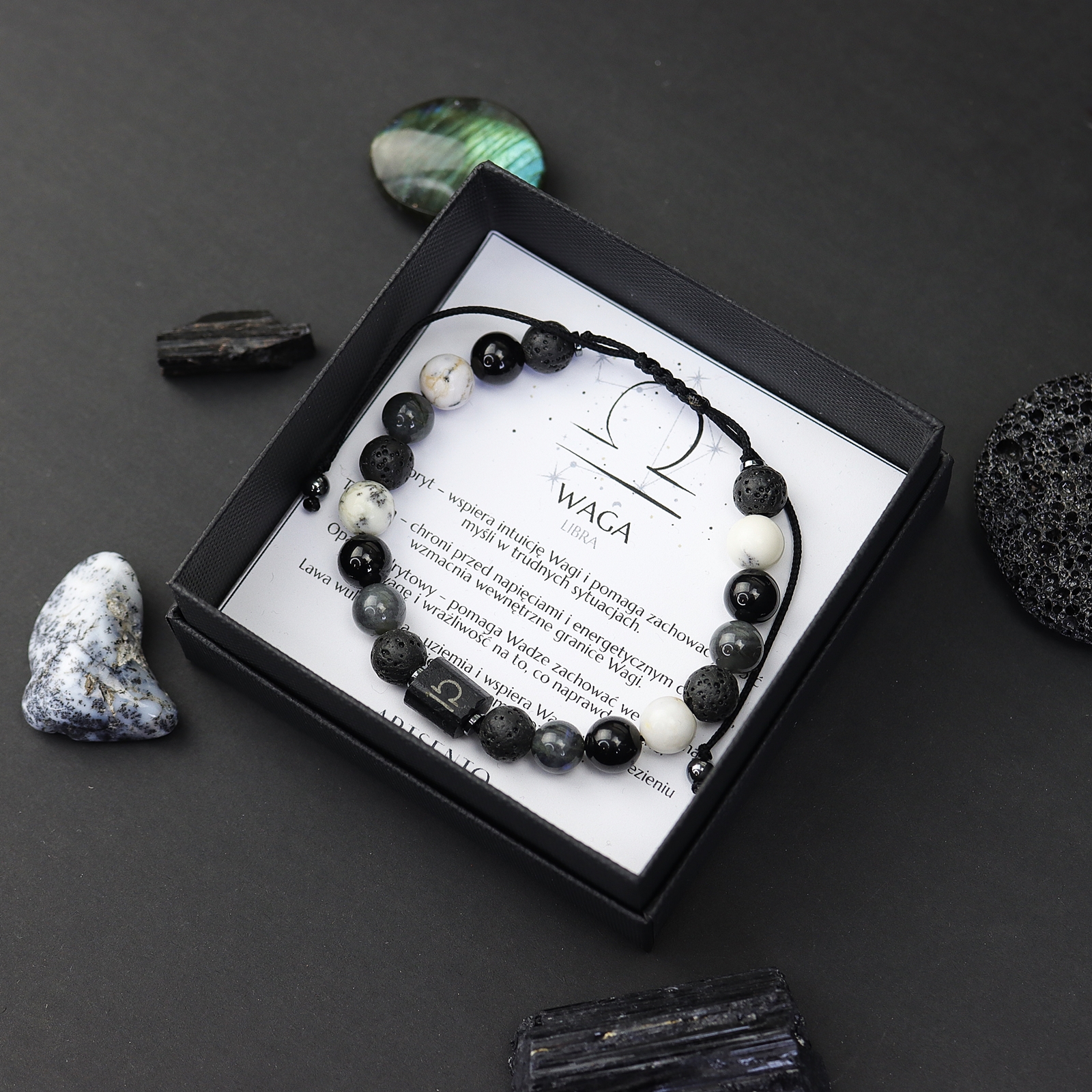 Męska bransoletka z kamieni naturalnych dla Wagi to nie tylko stylowy dodatek – to osobisty talizman, który wspiera wewnętrzny spokój i emocjonalną równowagę. Idealna na prezent lub jako biżuteria dla mężczyzny, który ceni harmonię, estetykę i życie w zgodzie ze sobą.