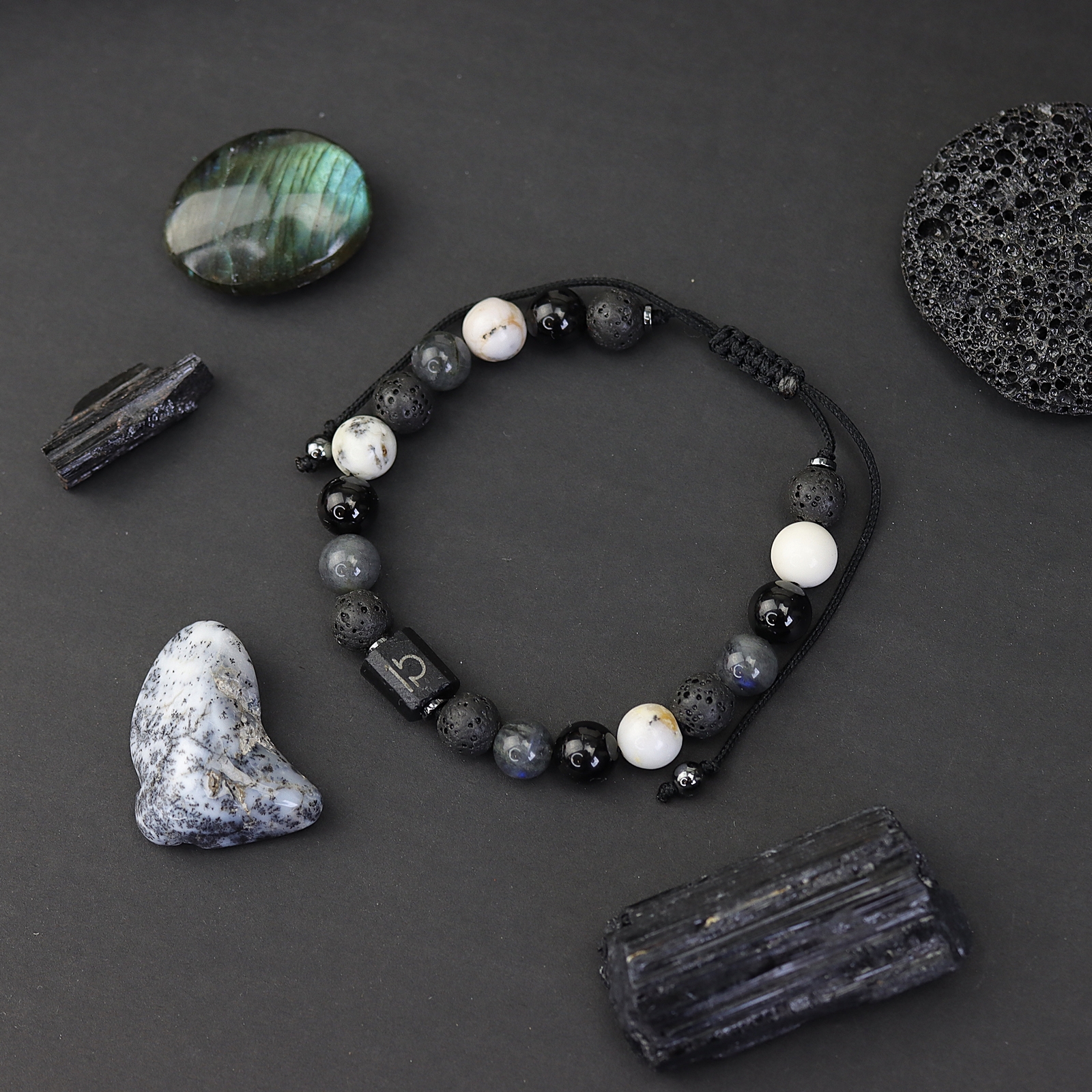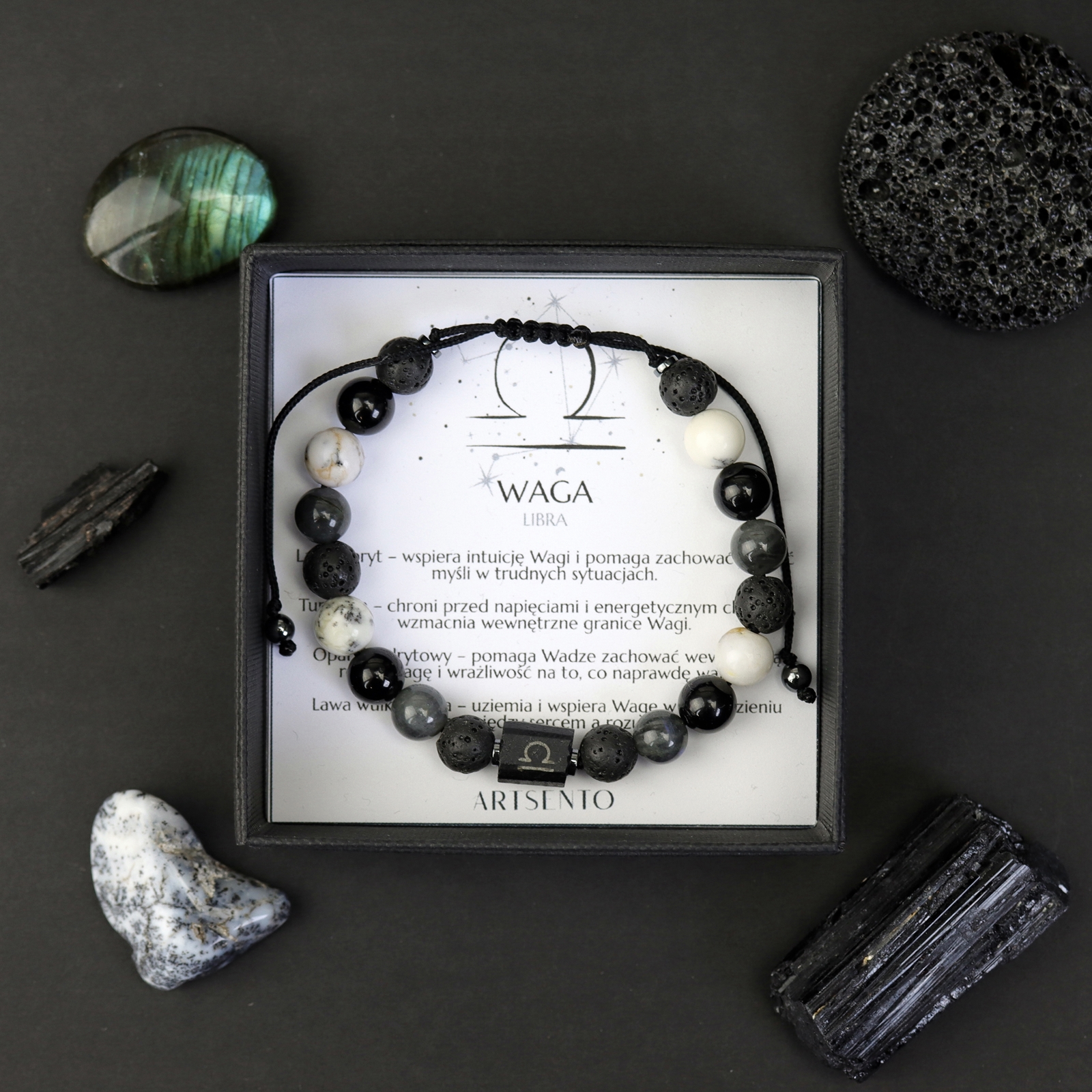 Bransoletka zodiakalna WAGA to wyjątkowa propozycja dla mężczyzn, którzy cenią równowagę, estetykę i życie w zgodzie ze sobą. Zaprojektowana z myślą o energii Wagi – z lawy wulkanicznej, turmalinu i kamieni, które wspierają spokój, intuicję i wewnętrzną harmonię. Z grawerem, który przypomina, kim jesteś.