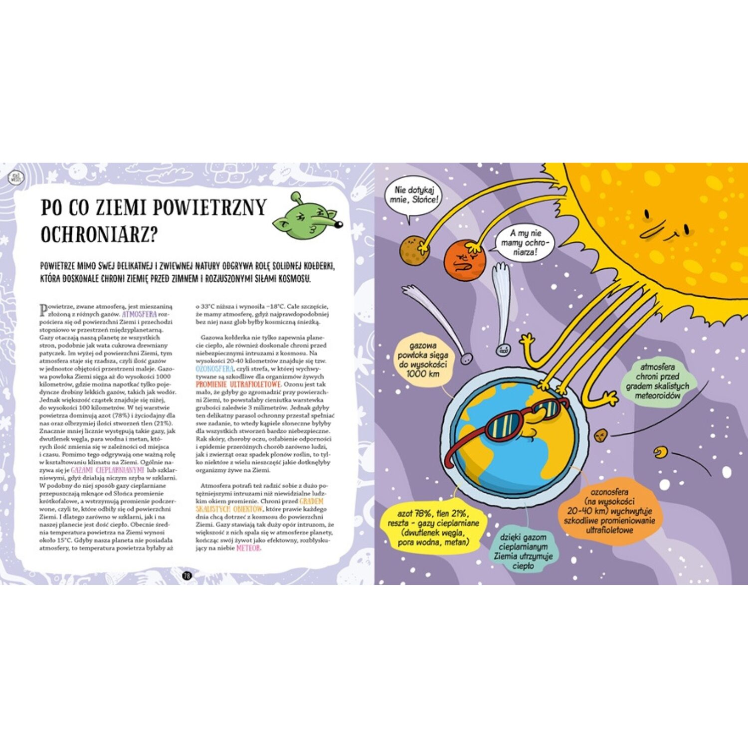 Napisana przystępnym, zabawnym językiem, książka zachęca do zadawania pytań i rozwija naukowe myślenie. Odpowiada na intrygujące pytania o wulkany, trzęsienia ziemi, oceany, pogodę, ruchy planet – i robi to w sposób przystępny, obrazowy i intrygujący.
