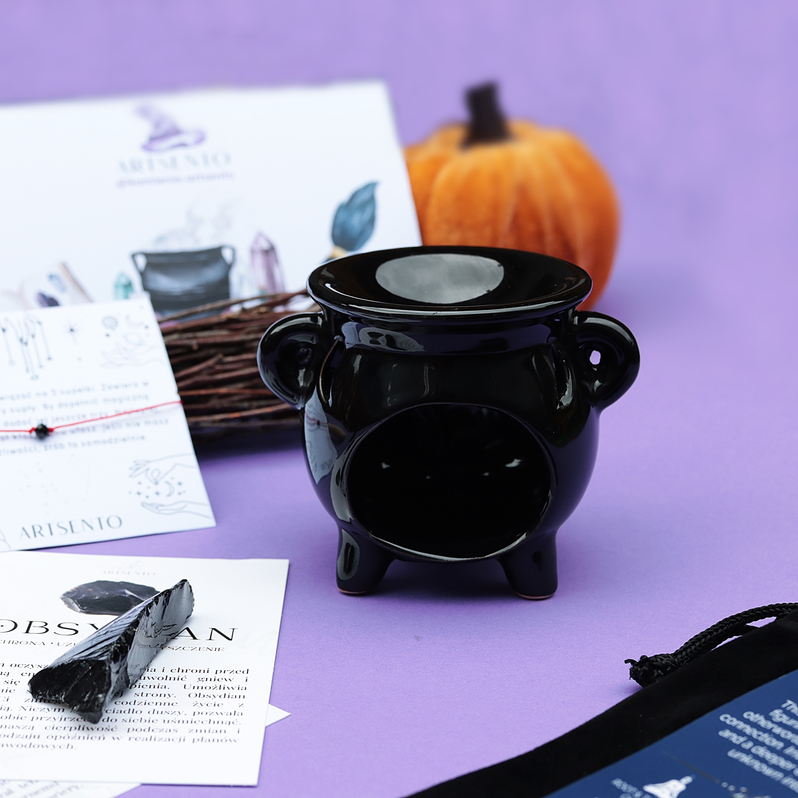 ? Mały kociołek podgrzewacz olejków . W sam raz na Halloween! Wygląda jak miniaturowy kociołek czarownicy, a jego zadaniem jest nie tylko stworzenie magicznej atmosfery, ale też wzmocnienie rytuałów oczyszczających i ochronnych. Wypełnij go ulubionym olejkiem, zapal świeczkę i pozwól, aby ciepło podgrzało powietrze pełne aromatycznej magii.
