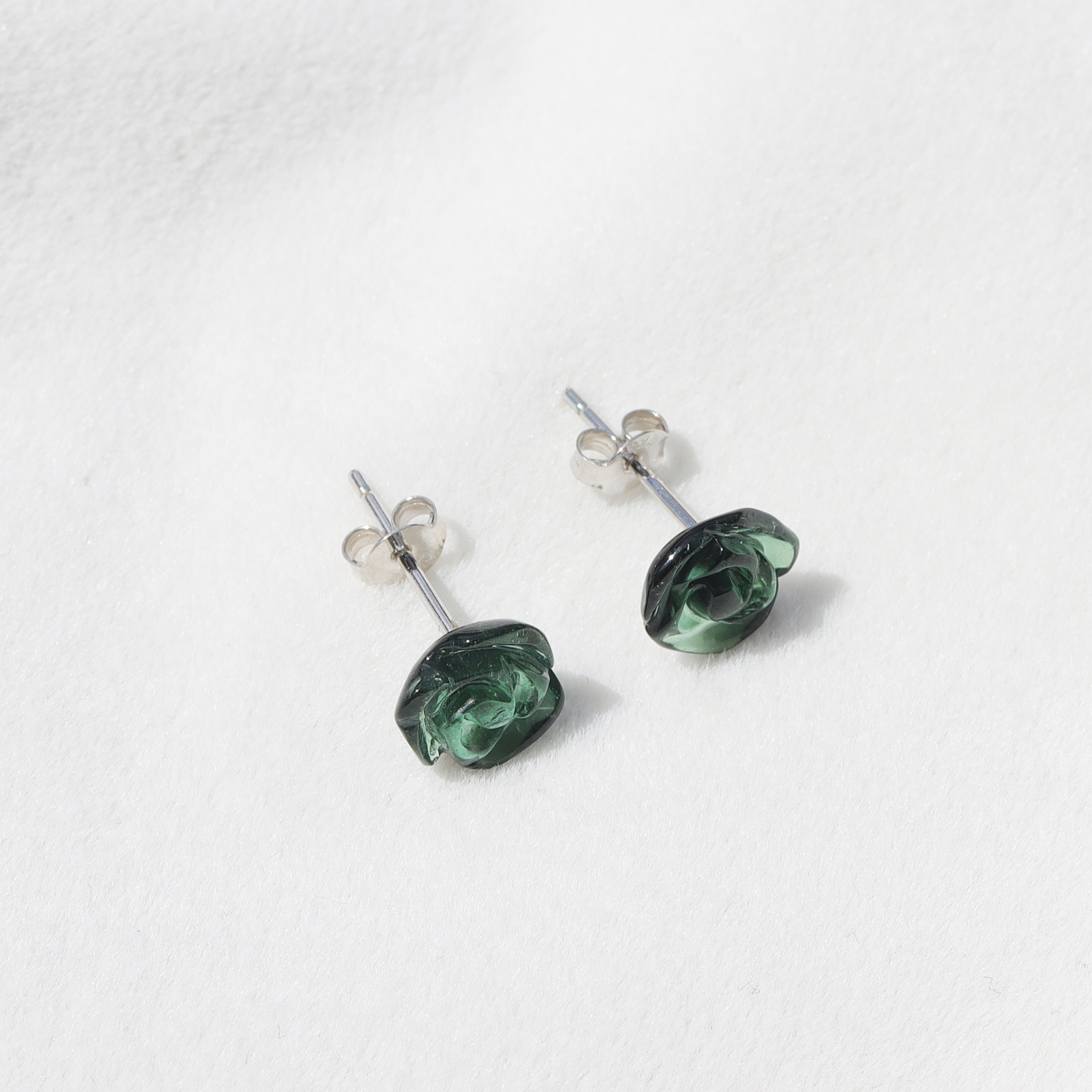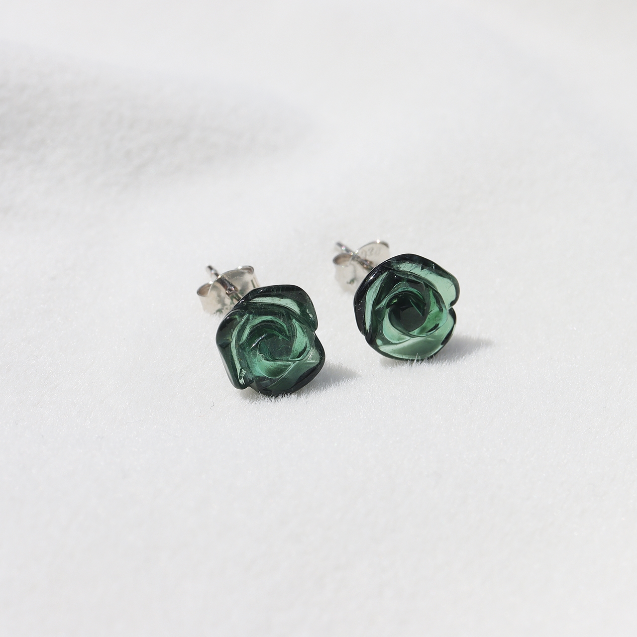 Kolczyki w kształcie kwiatów róży wykonane z naturalnego turmalinu wielobarwnego – każda para to unikalne dzieło natury i rąk ludzkich. Precyzyjnie rzeźbione w formie subtelnych różyczek, zachwycają romantycznym charakterem i piękną grą kolorów – od głębokiej zieleni po delikatne odcienie różu. Dzięki temu każdy egzemplarz jest absolutnie niepowtarzalny.