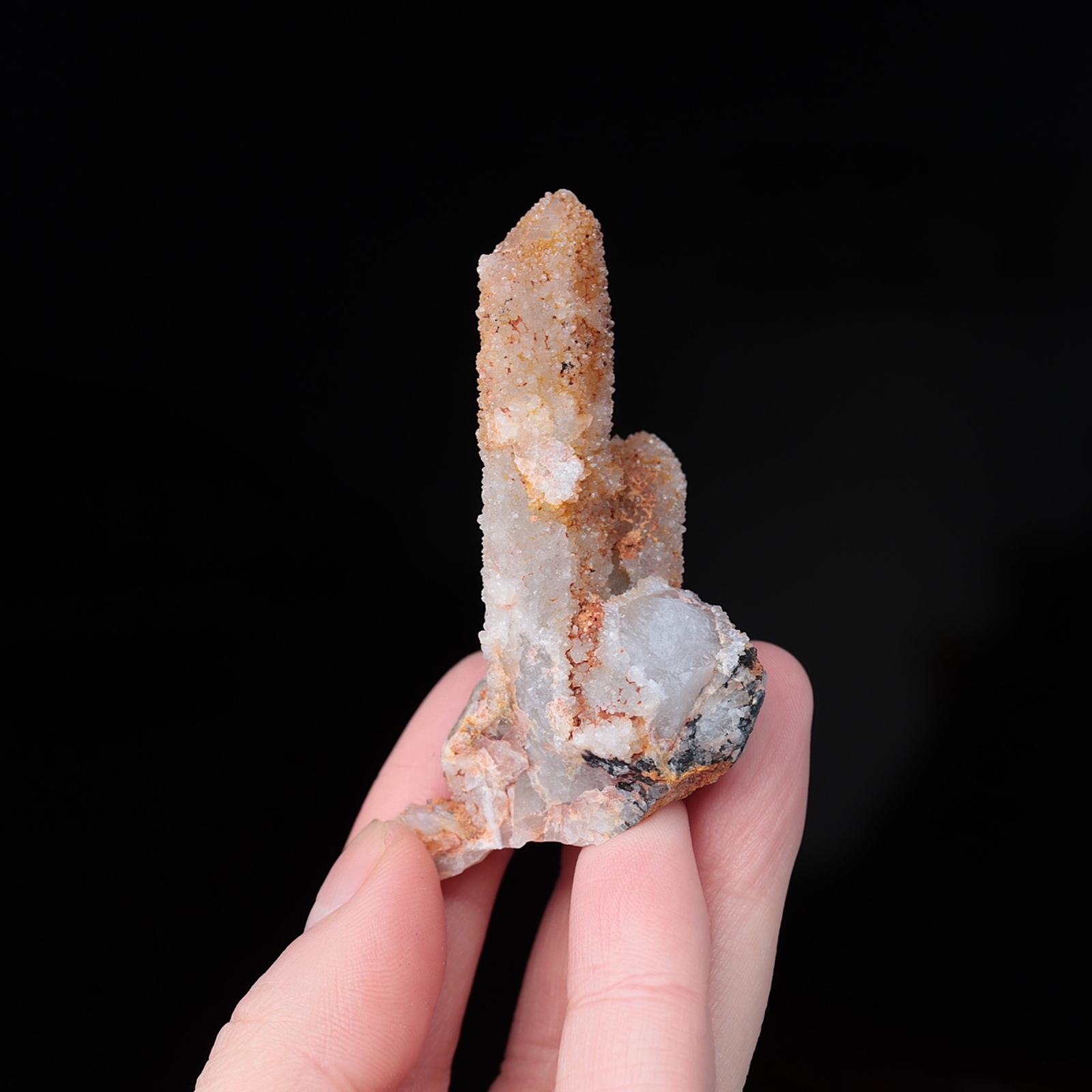 Jego wygląd zwykle składa się z pojedynczego kryształu z fasetowanym punktem i otoczonego mniejszymi, ale podobnie ukształtowanymi kryształami.