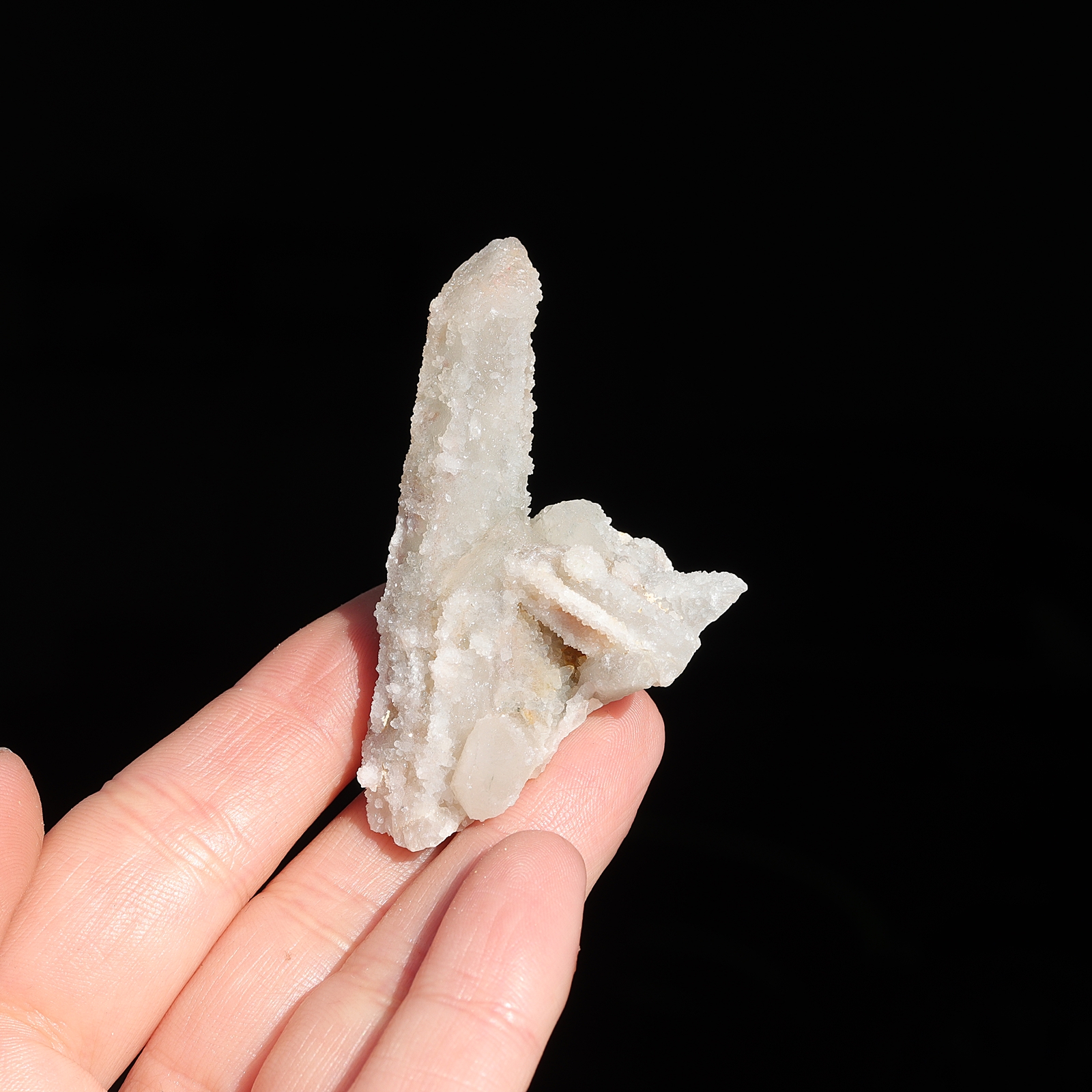 Jego wygląd zwykle składa się z pojedynczego kryształu z fasetowanym punktem i otoczonego mniejszymi, ale podobnie ukształtowanymi kryształami.