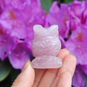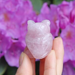 Kwarc różowy sowa figurka rzeźba 3.8cm – Kamień Miłości i Samoakceptacji