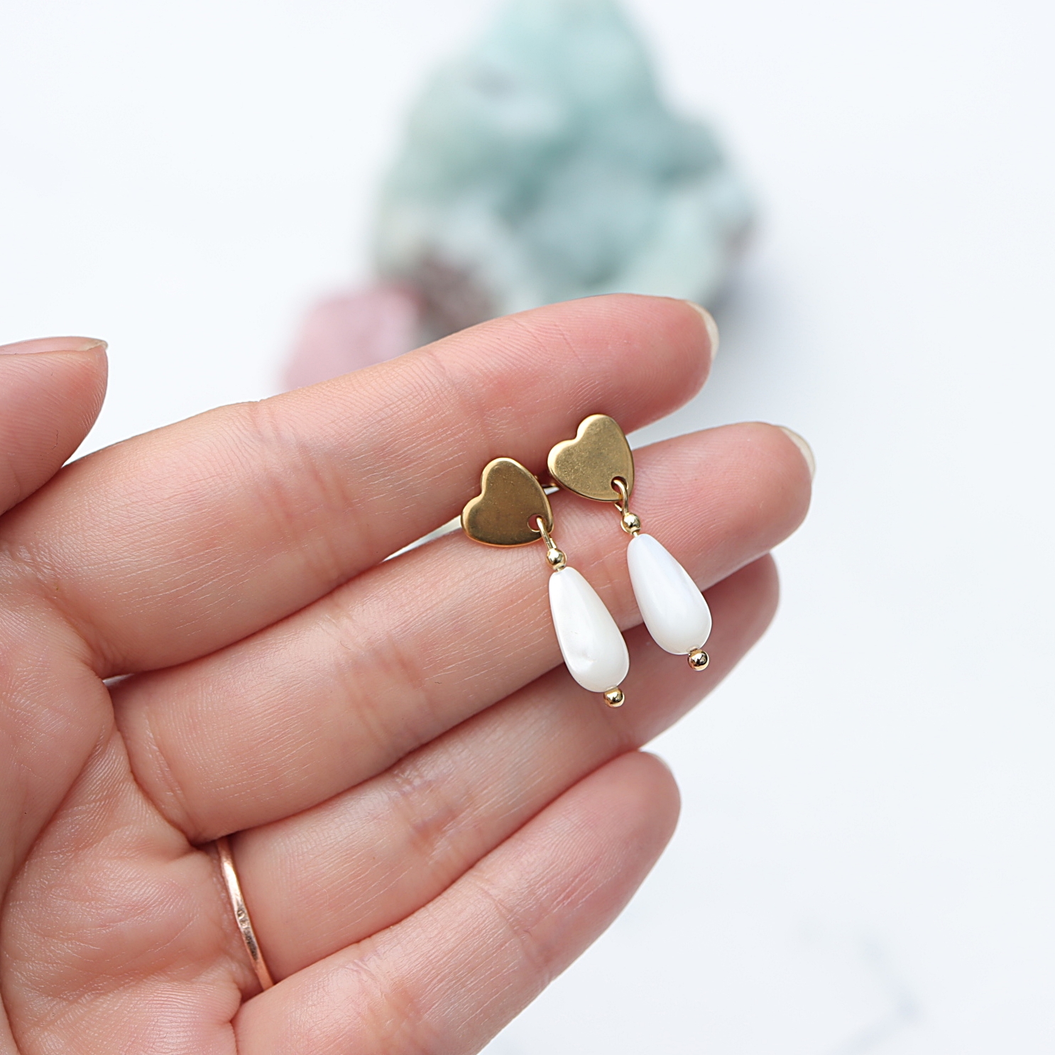 Delikatne kolczyki z masy perłowej to esencja kobiecości i subtelnej elegancji. Dzięki swojemu minimalistycznemu designowi idealnie pasują do każdej stylizacji – od codziennego, swobodnego ubioru po wyrafinowane kreacje. Te ręcznie wykonane kolczyki są zawieszone na sztyftach ze stali chirurgicznej w kolorze złotym, co gwarantuje ich trwałość i komfort noszenia. Kolczyki z masy perłowej od Artsento nie tylko pięknie wyglądają, ale również symbolizują czystość i naturalne piękno.