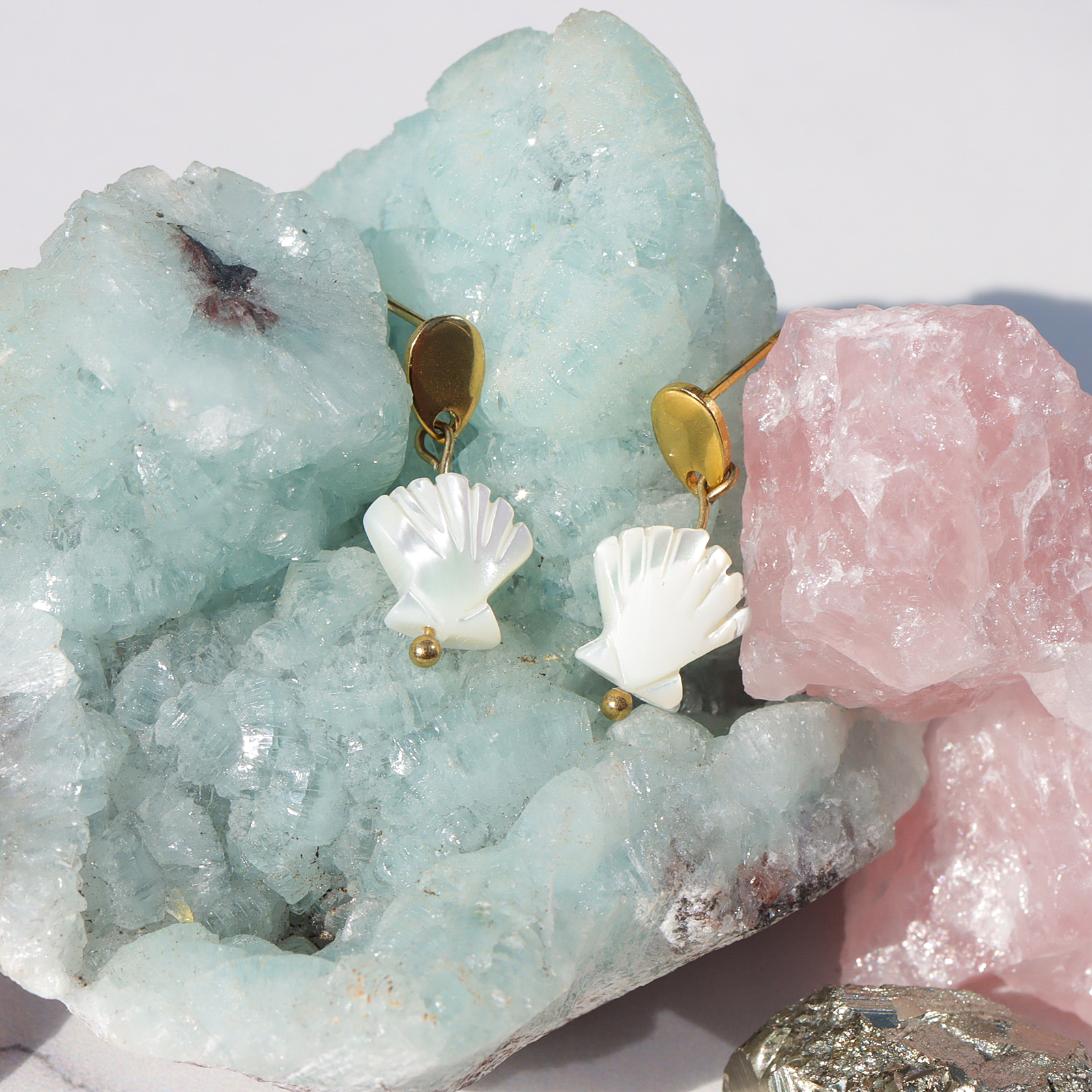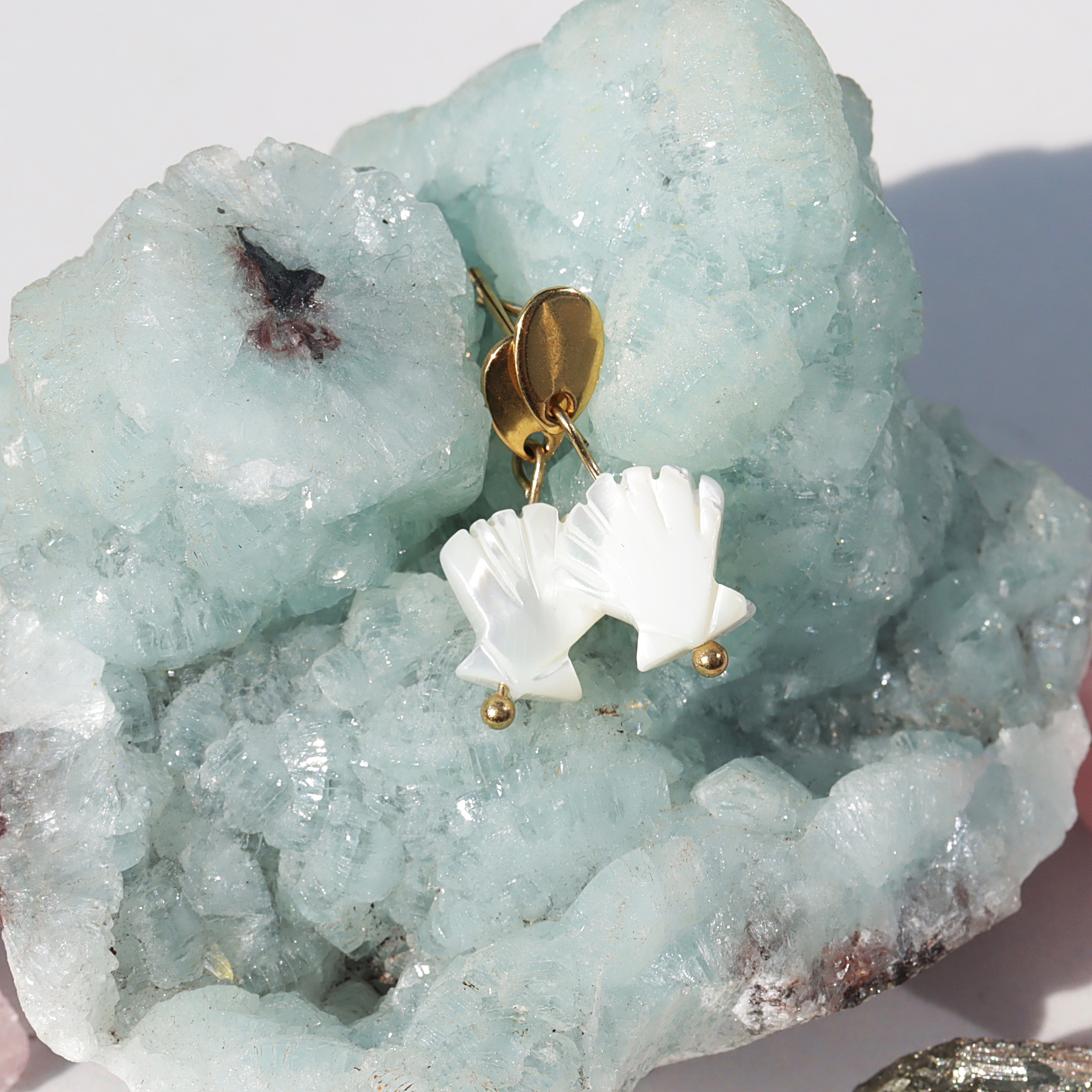 Delikatne kolczyki z pięknie opalizującej masy perłowej. Idealne na lato!