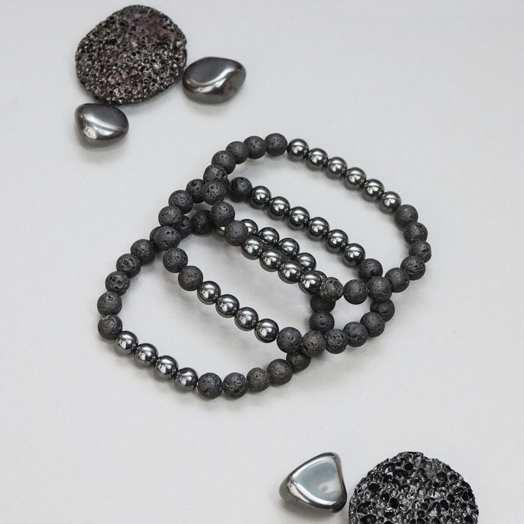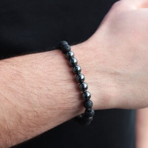 Bransoletka z hematytem i lawą wulkaniczną to nie tylko stylowy dodatek, ale też silny talizman dla mężczyzny, który wie, czego chce od życia.