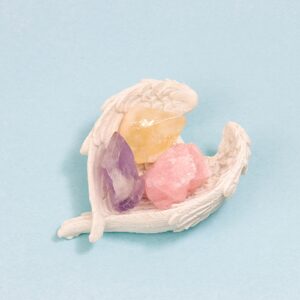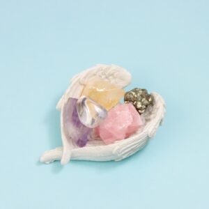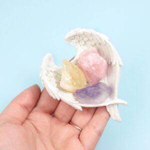 Ta delikatna miseczka w kształcie skrzydeł jest idealna na przechowywanie drobiazgów. I choć jest niewielka, to zmieści biżuterię, kamienie naturalne, czy inne małe skarby. Skrzydła od wieków symbolizują ochronę, wolność i duchową harmonię. Umieszczona na stoliku nocnym, w łazience czy w salonie, wprowadza odrobinę magii do codzienności.