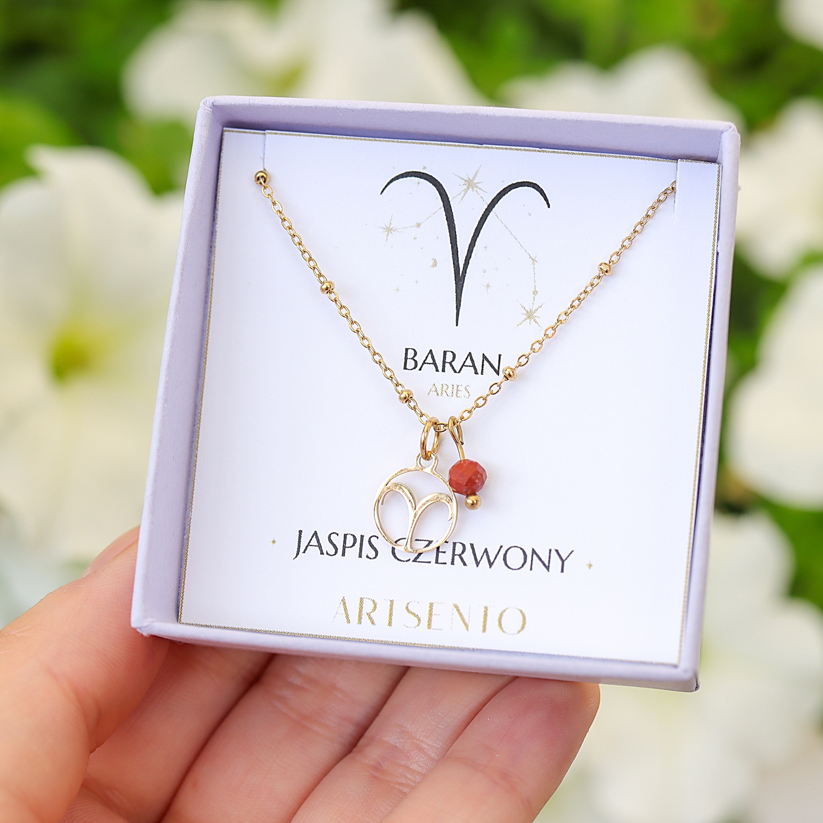 Podkreśl swój wyjątkowy znak zodiaku z magicznym naszyjnikiem od Artsento. To nie tylko elegancki dodatek, ale również osobisty talizman, który odzwierciedla Twoją wyjątkową energię i charakter. Zawieszka ze znakiem zodiaku ozdobiona jest Jaspisem czerwonym, który jest kamieniem mocy Barana. Minerał ten wzmacnia siłę witalną i dodaje energii, co pomaga Baranom utrzymać ich życie w dynamicznym i aktywnym tempie. Czerwony Jaspis zapewnia uziemienie i stabilność. Może to pomóc Baranowi zachować koncentrację i skupienie, nawet w obliczu przeciwności losu.