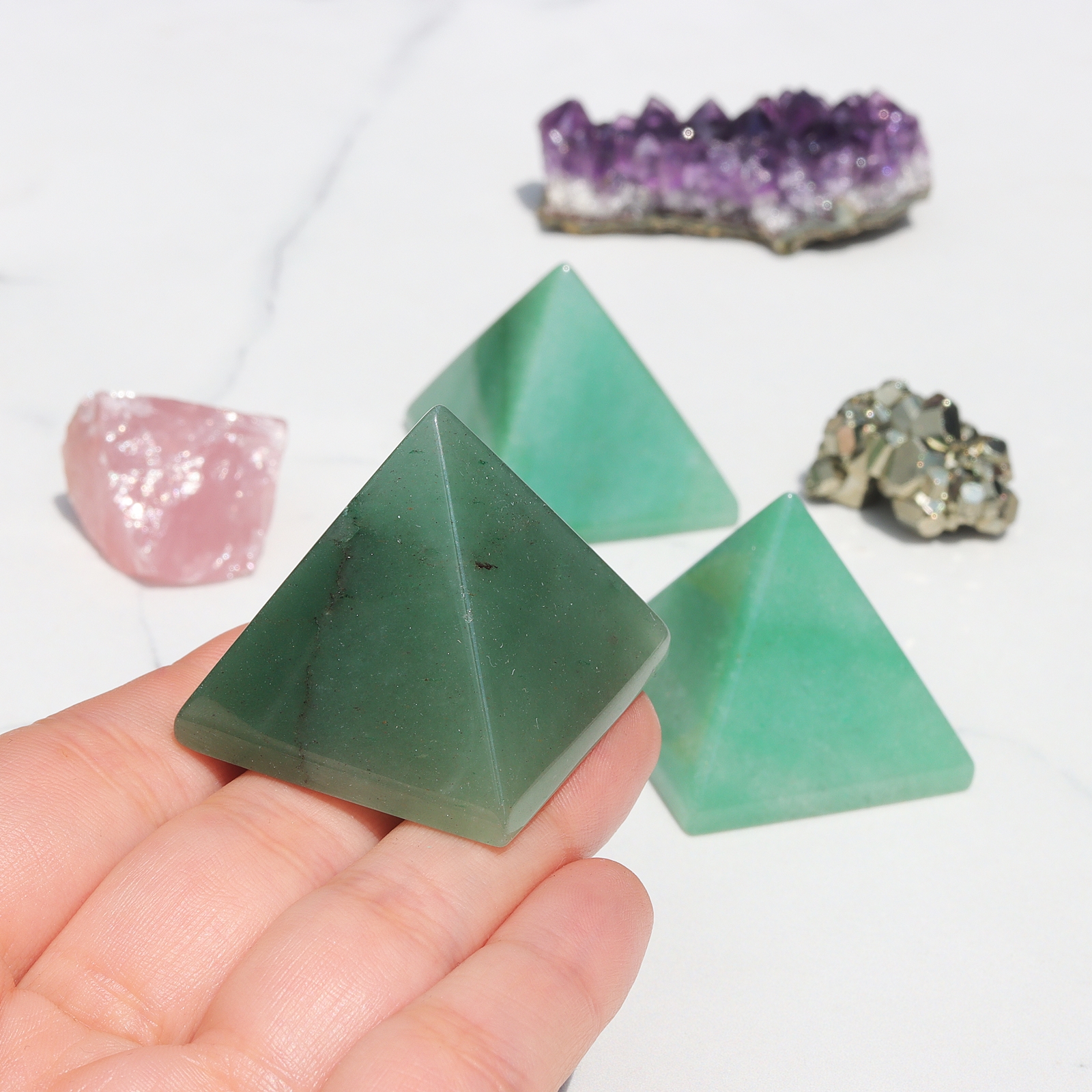 Kryształowe piramidy kierują i skupiają energię poprzez swój wierzchołek. Podnoszą wibracje i wzmacniają energię Twoją oraz kamienia, z jakiego są zrobione. Podstawa piramidy pomaga zakotwiczyć Twoją intencję, podczas gdy wierzchołek wysyła ją w przestrzeń wszechświata. Dzięki temu piramidy są przydatne do ustalania intencji i manifestowania rzeczy. Forma piramidy działa jako aktywator energii. Kryształową piramidę można również wykorzystać do zrównoważenia energii.