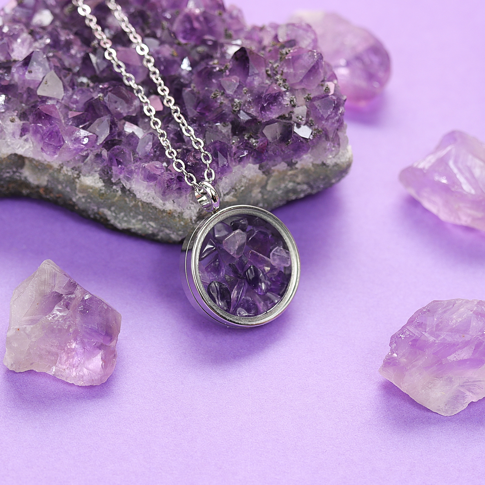 ✨ Sekretnik z ametystem to biżuteria, która nie tylko zdobi, ale także posiada wyjątkowe właściwości. Wykonany jest ze stali chirurgicznej. Ametyst ma zdolność do wynoszenia wiedzy na wyższy poziom, dlatego wspomaga nas w rozwoju duchowym. Poprawia kreatywność i pomaga rozwijać pasje. Pomaga w rozwijaniu intuicji oraz w zwalczaniu bezsenności, stresu, lęków i uzależnień. Zamknięty w minimalistycznym sekretniku staje się osobistą tarczą, która towarzyszy Ci każdego dnia.