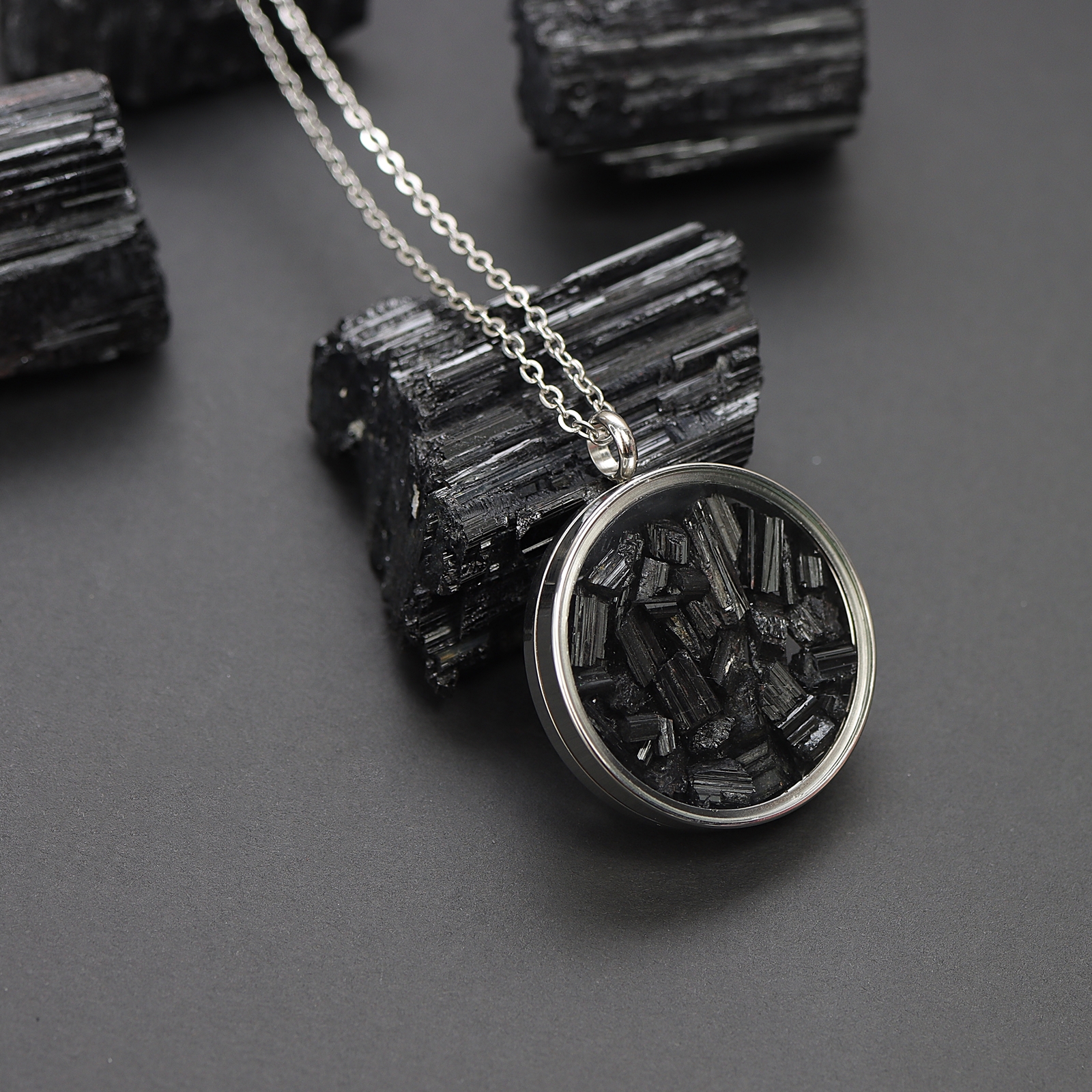 ✨ Sekretnik z turmalinem to biżuteria, która nie tylko zdobi, ale także chroni. Wykonany jest ze stali chirurgicznej. Czarny turmalin od wieków uważany jest za jeden z najsilniejszych kamieni ochronnych – neutralizuje negatywną energię, wzmacnia aurę i pomaga zachować emocjonalną równowagę. Zamknięty w minimalistycznym sekretniku staje się osobistą tarczą, która towarzyszy Ci każdego dnia. Każdy naszyjnik wypełniamy starannie wybranymi odłamkami turmalinu, tak by jego energia mogła działać blisko Twojego serca. Dyskretny, a jednocześnie pełen mocy – to amulet, który dba o Twój spokój w każdej sytuacji.