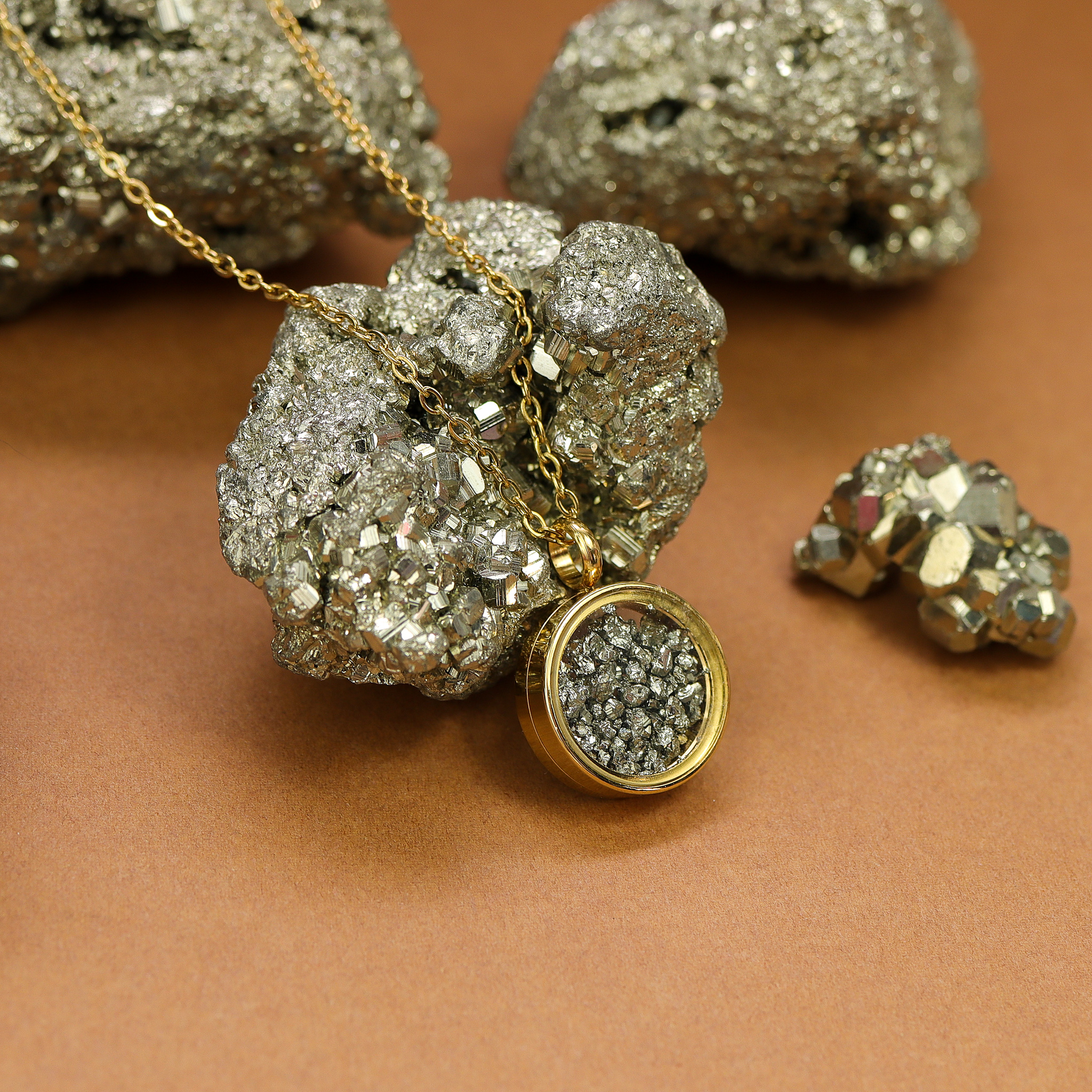 ✨ Sekretnik z pirytem to symbol siły, pewności siebie i dobrobytu. Jego złociste kryształki od wieków kojarzone są z energią sukcesu, przyciąganiem bogactwa i wzmacnianiem motywacji. Nosząc go blisko serca, codziennie przypominasz sobie o swoim potencjale i wewnętrznej sile. Każdy sekretnik jest starannie wypełniany drobinkami pirytu, by jego blask inspirował do działania i pomagał przełamywać przeszkody. Sekretnik z pirytem to nie tylko ozdoba, ale także talizman wspierający Twoje cele i marzenia.