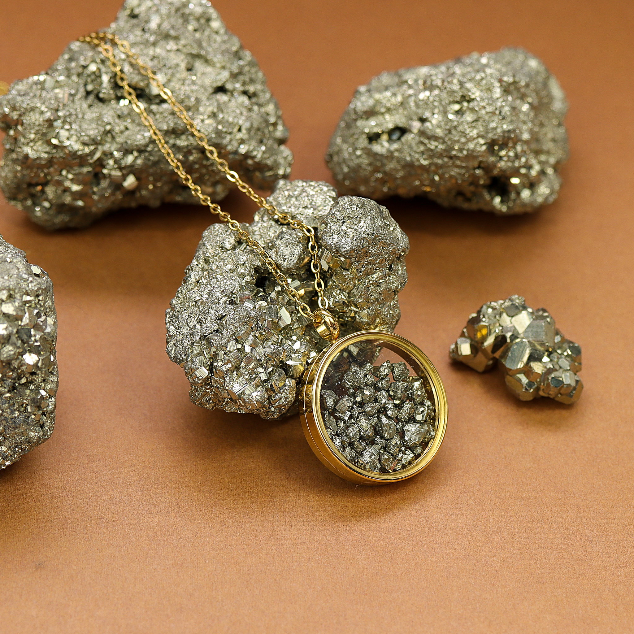 ✨ Sekretnik z pirytem to symbol siły, pewności siebie i dobrobytu. Jego złociste kryształki od wieków kojarzone są z energią sukcesu, przyciąganiem bogactwa i wzmacnianiem motywacji. Nosząc go blisko serca, codziennie przypominasz sobie o swoim potencjale i wewnętrznej sile. Każdy sekretnik jest starannie wypełniany drobinkami pirytu, by jego blask inspirował do działania i pomagał przełamywać przeszkody. Sekretnik z pirytem to nie tylko ozdoba, ale także talizman wspierający Twoje cele i marzenia.