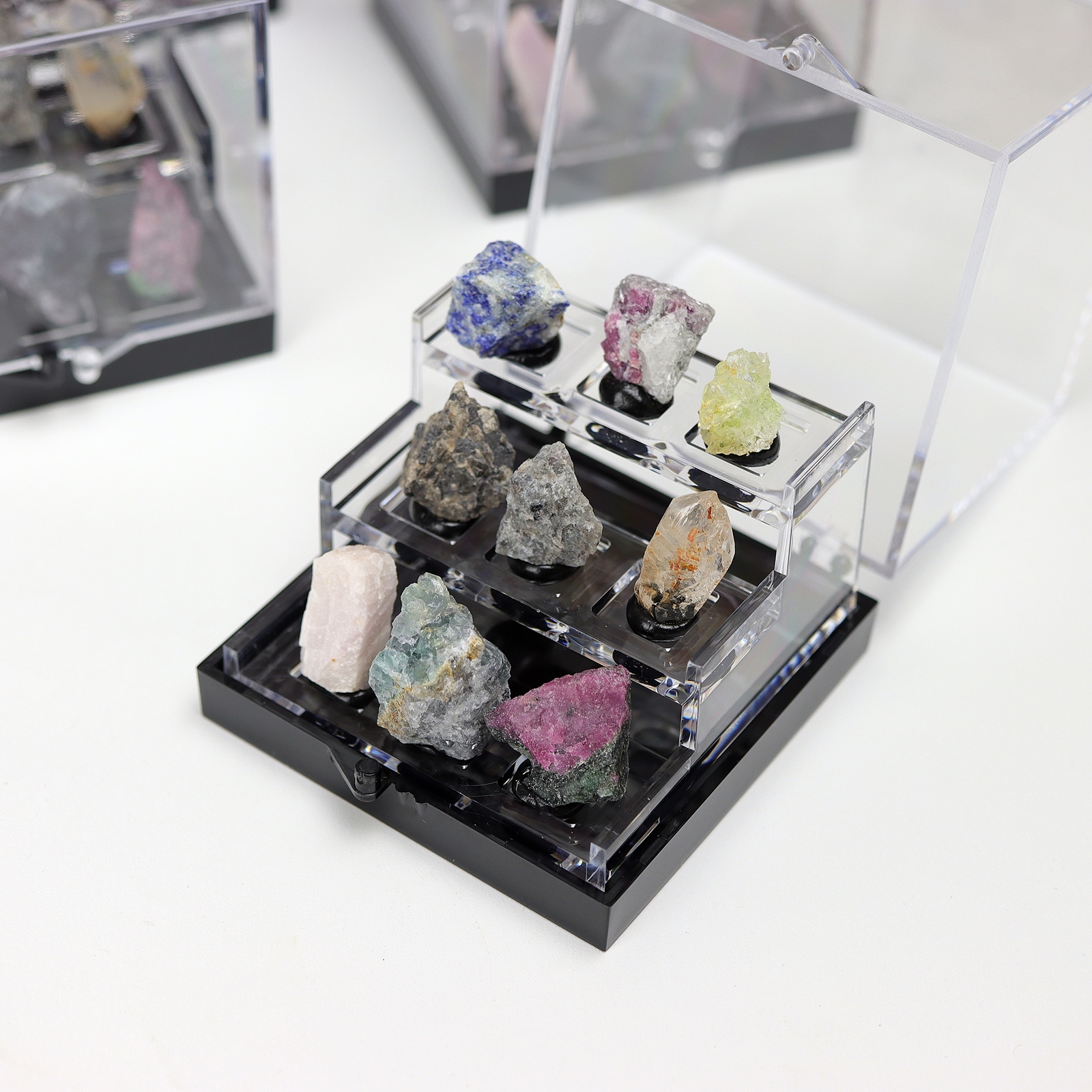 ✔️ Wysoka jakość ekspozycji – kamienie są bezpiecznie umieszczone w schludnej, przeźroczystej gablotce