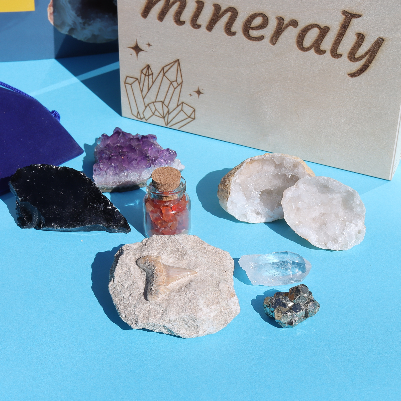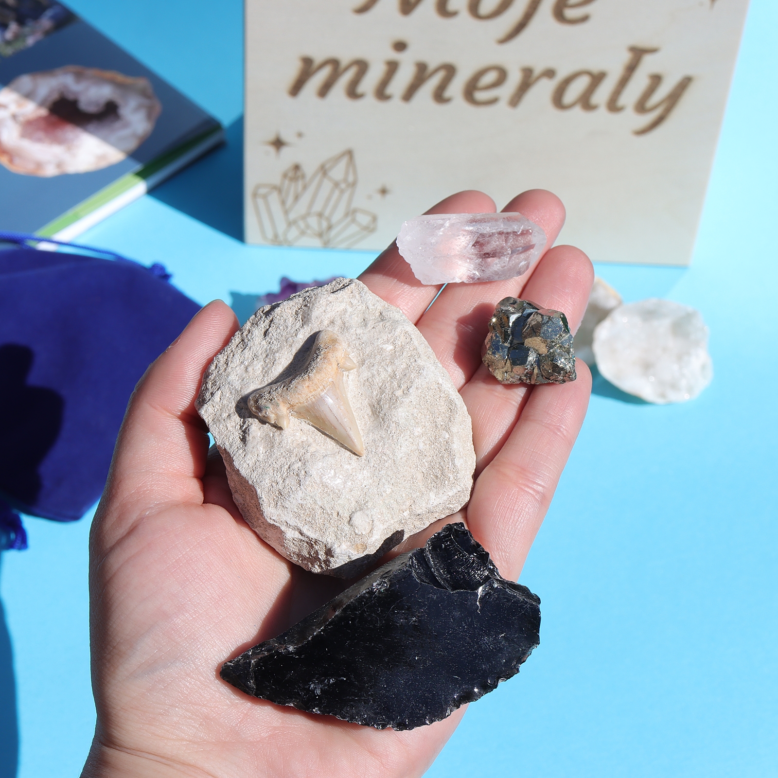 Zbieranie minerałów to fantastyczna okazja, by rozwijać wiedzę o naturze, geologii i historii naszej planety. Każdy minerał w zestawie ma swoją unikalną historię – np. skamieniały ząb rekina sprzed 50 milionów lat to wspaniała lekcja o prehistorii. Dziecko może dowiedzieć się, jak minerały powstają, jakie mają właściwości i jak różne elementy wpływają na naszą codzienność. Dodatkowe zalety rozpoczęcia kolekcji: