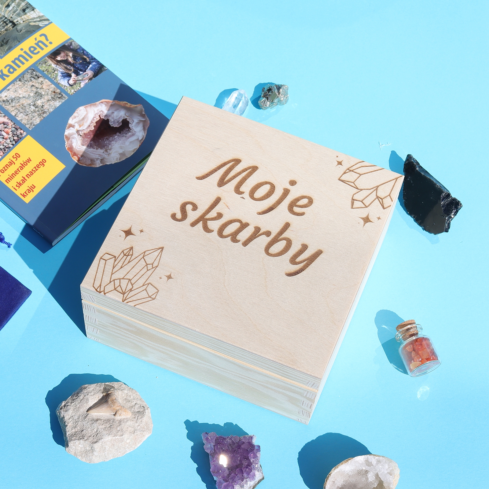 To wyjątkowe pudełko dla małego kolekcjonera skarbów. Z grawerem ‘Moje minerały’ lub “Moje skarby” staje się prawdziwą, osobistą skrzynią odkrywcy – idealne miejsce na najpiękniejsze kamienie, które czekają na swoją historię.